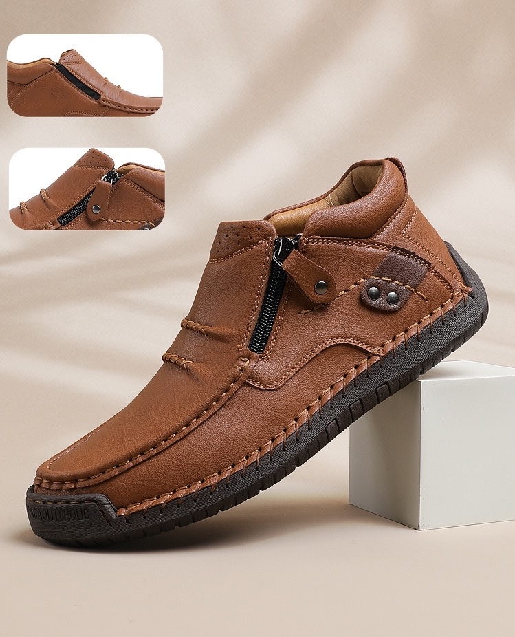 ⏰Last Day! 50% OFF 🔥Men's Handmade Leather Boots with Arch Support & Wide Toe Box | Easy Zip Design