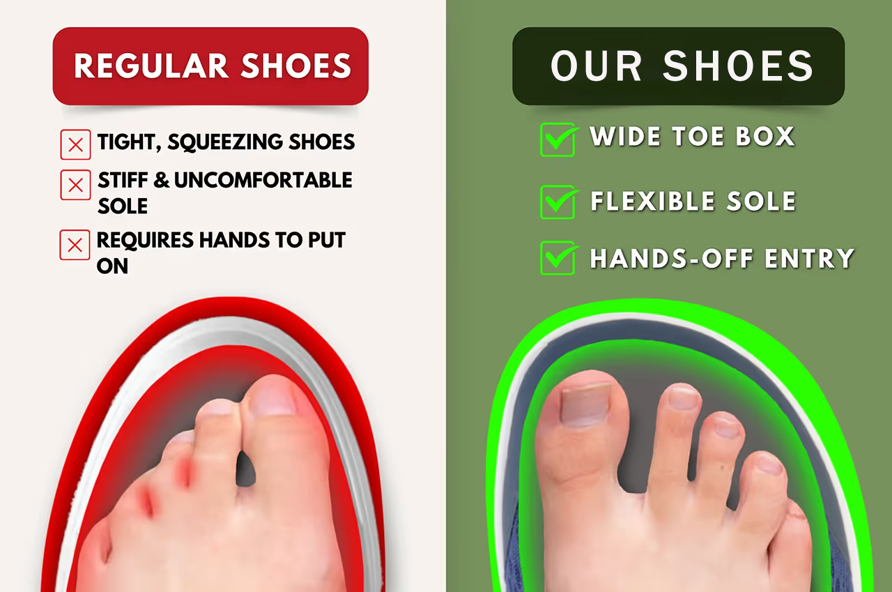 Say goodbye to cramped toes! The wide toe box provides ample room for your feet, preventing pressure on bunions and reducing joint pain. Perfect for anyone dealing with foot conditions like arthritis and plantar fasciitis.